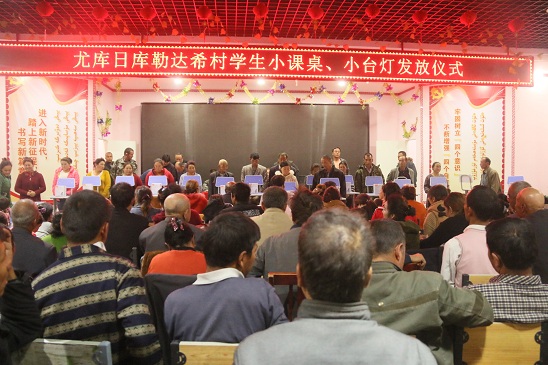 清风网讯(通讯员 沙雅县安监局 崔文君)10月16日,尤库日库勒达希村举行 “爱心小课桌”捐赠发放仪式,向贫困家庭的少年儿童们奉献一份爱心、贡献一份力量。此次爱心捐赠活动物品由嘉兴慈善总会提供,共计小课桌、小板凳、台灯26套。经前期摸底调查,将“爱心小课桌”发放给26户有适龄入学儿童的生活困难家庭。接受捐赠的学生及家长纷纷表示,“感谢为我们募捐课桌的爱心人士,感谢为此付出辛苦的全体工作队员和村干部们,更要感谢党和政府一直以来给予我们的巨大关心和帮助。我们要在祖国母亲温暖的怀抱里,好好学习、天天向上,学好国语,像爱护眼睛一样爱护民族团结,以优异的成绩来回报祖国,回报社会。”