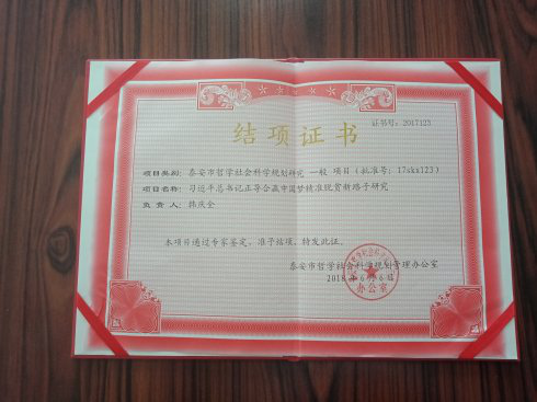 在此基础上,在党组织坚强领导、主持支持和同志们帮助下,韩庆全从实践中发现、归纳、撰写1万余字的《习近平总书记正导合赢中国梦精准脱贫新路子研究》,央视网《给总书记捎句心里话》、中华报道网、军创网、搜狐、东方都市网等十几家全国性媒体面世,经泰安日报社指导审核推荐上报,2018年6月6日获泰安市哲学社会科学规划管理办公室颁发的泰安市哲学社会科学研究规划研究项目结项证书。