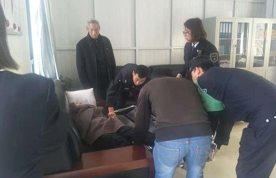 原来, 14日上午由延安站开往西安北站D5083次列车再有10分钟到达黄陵南站时,旅客淮女士突然感到身体不适,在得知情况后,列车员立即使用对讲机呼叫了当班列车长,列车长立即携带急救药箱赶赴现场了解情况。鉴于列车马上停靠前方车站黄陵南站,列车长及时联系了延安铁路公安处黄陵站派出所民警请求及时协助处置,黄陵所民警李文军、辅警白洋洋得知情况后立即拨打了120急救电话,并携带担架在站台等候,列车到达后立即协助黄陵县人民医院急救中心的医务人员将该旅客送上该院的急救车。