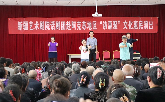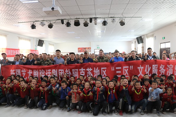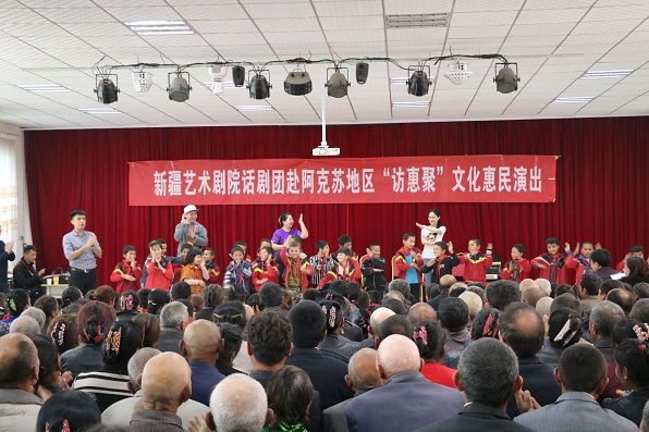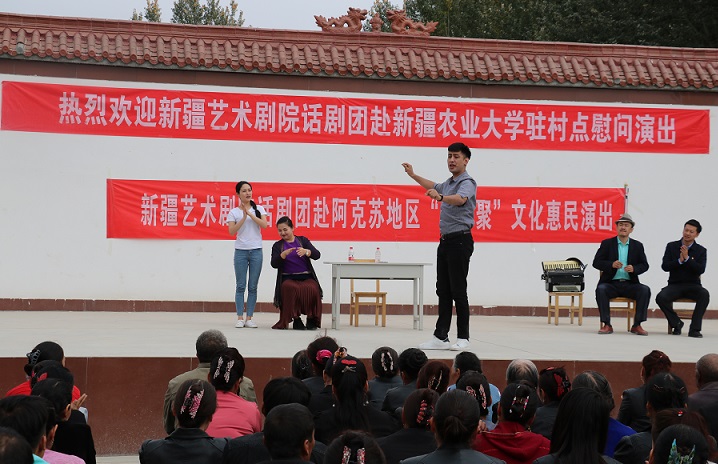 清风网讯(通讯员:新疆农业大学 宋宏伟 许玉斌)新疆艺术剧院话剧团“访惠聚”文化惠民“真情”剧组应新疆农业大学驻村工作队之邀请,于10月15日起,来到新疆农业大学驻阿瓦提县拜什艾日克镇的5个驻村点开展慰问演出活动,将《真情》送到了工作队和村民身边,3天时间,演员们不顾劳累,共进行了5场演出,每一场都投入了十二分的精力,约3000名观众观看演出,演出现场人山人海,每到一个村子,村民们都翘首以盼,早早等在那里,期待着演出。