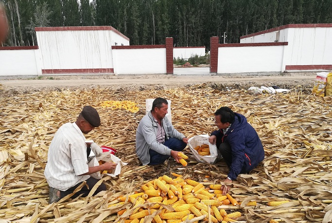 “今年,多亏了工作队给我们联系的玉米联合收割机,将我家5亩玉米地收割完毕,现在太省时省力了,还将玉米秸秆打包成了饲料,解决了牛羊过冬饲料问题,现在的日子是越过越有盼头了。”摸着金灿灿、沉甸甸的玉米棒,村民阿不都拉·塔力甫乐得合不拢嘴。