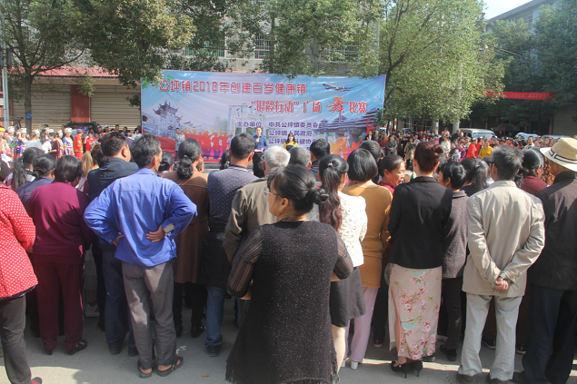 清风网讯(公坪镇政府:舒刚 郑蕾)金秋十月,丹桂飘香。为庆祝重阳佳节,贯彻落实《全民健身条例》和《全民健身计划》,推动全民健身运动,丰富群众文化生活,助推脱贫攻坚工作。公坪镇根据县老科协的部署,于2018年10月12日在镇政府门口广场,举办了开展创建百岁健康镇“银龄行动”广场舞比赛活动,来自全镇5个村(居)和市场自由队等9支代表队约200多人参加了这次大赛。