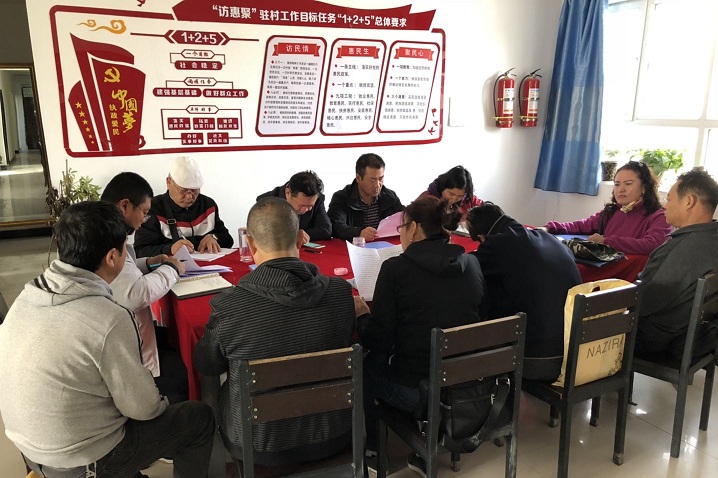 从10月16日至18日,驻村工作队利用三天时间,与分院下派干部一起认真学习了地委《关于在全地区开展“聚焦总目标 作风再整顿”专项活动的实施方案》《中国共产党纪律处分条例》《新疆维吾尔自治区去极端化条例》等学习篇目,深入学习领会地委精神要求,以学促用,进一步学习掌握政策法规、工作方法,以学促转,深入查找“七个方面”存在的问题,立查立改,认真解决作风不实,落实棚架等问题,为群众办实事办好事的精神,真抓实干,实现“访惠聚”工作“1+2+5”总目标。