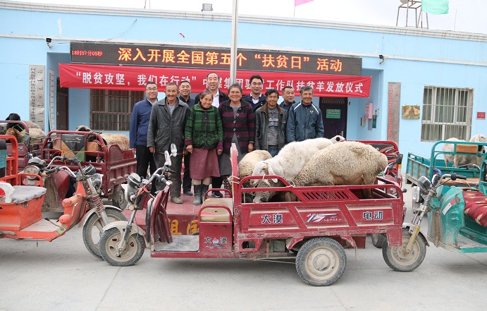 为帮助2019年拟脱贫户早日脱贫,帮扶困难群众,中煤新疆分公司为贫困群众购置扶贫羊发展养殖业脱贫增收。扶贫羊发放仪式上,工作队将80只扶贫羊分发给16户贫困户和4户困难群众。