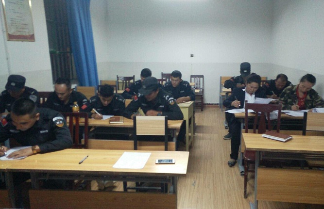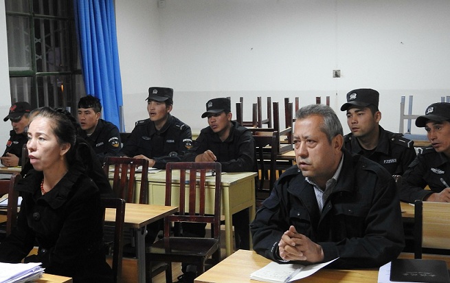 因为考虑到白天干部、队员和协警以及学校老师都有各自的工作任务,学习时间便定在了晚上的8点-9点业余时段。双语夜校教学内容主要是国语和计算机操作。国语侧重于日常会话和听说写能力,计算机则侧重于办理业务必须的文字表格处理等。国语授课方式采用维语、拼音、国语三重教法,计算机授课则采取手把手实地上机操作。同时,为检验学习效果,实行每堂一抽试、每晚一作业,每周一测试,每月一考核制度,将考试成绩予以公示,对学习效果好的学员进行表彰奖励,并作为干部年终评先评优的重要依据。