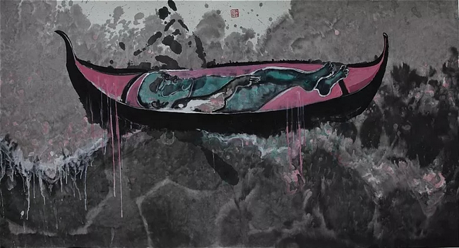看张渡的作品,如同进入一种魔幻的想象,构思奇颖,随心所欲,画面笔意通达连贯,赋色沉着华丽,创作一气呵成。张渡说:“我不喜欢给自己固定一种模式,更多的是追求一种自由的掌控能力。”