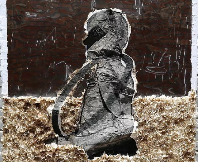 纵观此次展出的67幅作品,张渡很注重纸质媒介的空间承载力,不拘一格,巧用各种材质,既有油画、国画颜料、墨汁、丙烯,也有土、发丝、沙子纸浆等,灵活运用各种工具,包括油画笔、毛笔、板刷、油画棒、铅笔、钢笔、签字笔甚至一根棍子都能随意使用,有时还直接用手去糊涂乱摸,直截了当。