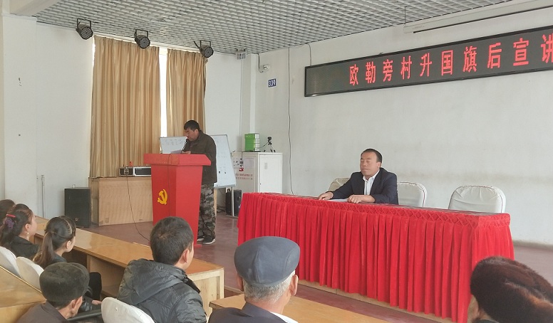 清风网讯(通讯员:拜城县市场监督管理局 尹安来)10月22日,在举行完周一升国旗仪式以后,在欧勒旁村村民活动中心举行了宣讲活动,村第一书记、工作队队长吐逊·艾山针对“国语学习的重要性”进行了发声亮剑,他指出,当前国语学习是当代社会发展的主流趋势,是促进各族人民交往交融的重大举措,也是维护祖国统一、民族团结的重要内容,通过国语学习,少数民族群众能够获得更多的就业机会,更容易融入新时代的发展潮流。他号召,全村群众一起携起手来,共同学好国语,国语学习不仅要从孩子抓起,每一个成年人、老人更应该重视自身的国语学习,切实让国语学习成为一种习惯,成为一种健康的生活方式,学好国语,从一点一滴做起。宣讲完毕后,现场300余名群众纷纷给予热烈的掌声。
