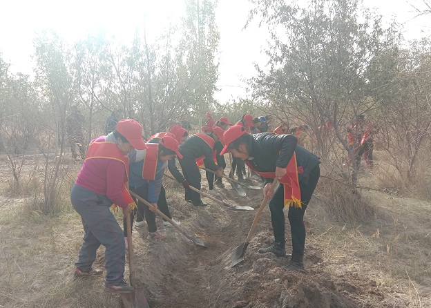 “植树造林是每一个公民的义务,我们村干部、党员更应该冲在前面。今天组织大家在这里主要是清理渠道、清除杂草,下周我们将开始栽种树苗,希望大家再接再厉”,村党支部书记亚克亚·艾山对植树造林志愿服务队说道。