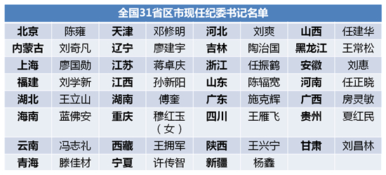 全国31省区市现任纪委书记名单(统计至2018年11月5日)
