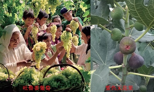 葡萄,首推“火洲”吐鲁番市的“无核白”葡萄,好种也好管,走在“葡萄沟”景区或者市区的葡萄长廊下,随手摘一串葡萄,十分惬意。这种葡萄皮薄、肉嫩、多汁、味美、营养丰富,素有"珍珠"美称,其含糖高达20-24%。当然,品尝葡萄,别忘了与“达坂城”的姑娘合个影!再南去一千公里,感觉克州阿图什的“木纳格”葡萄,串串葡萄,简直就是风景画,晶亮的果肉,让人馋涎欲滴。更有阿克苏地区阿瓦提县的艺人,将其加入大芸、鸽子血酿制成独特的“穆斯莱斯”红酒,因其具有补肾益脾之功效,让其如日中天!当然,吐鲁番“马奶子”葡萄,味道也不错!如果到此,别忘记品尝!