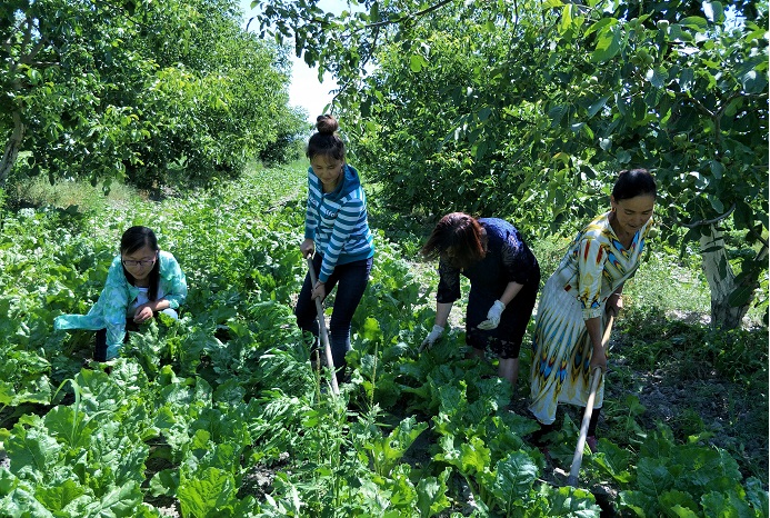 6月23日工作队帮助村民英力汗·肉孜甜菜地锄草