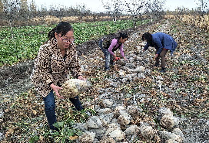 进过7个月生长,如今的甜菜已经成熟,硕大的果实把泥土都撑裂了缝,村民英力汗·肉孜看着个大饱满的甜菜,连走路都比平常轻快了几分,由于她一个人种了20亩甜菜忙不过来,这几天大家也都在忙着采收,雇佣不来劳力,工作队得知后立即组成帮扶组前往田间地头进行劳动帮扶。