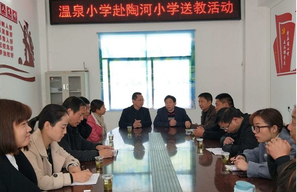 陶河中心学校校长张文介绍了陶河教育,并对温泉小学一行人的到来表示热烈欢迎,对这次帮扶送课活动表示感谢。