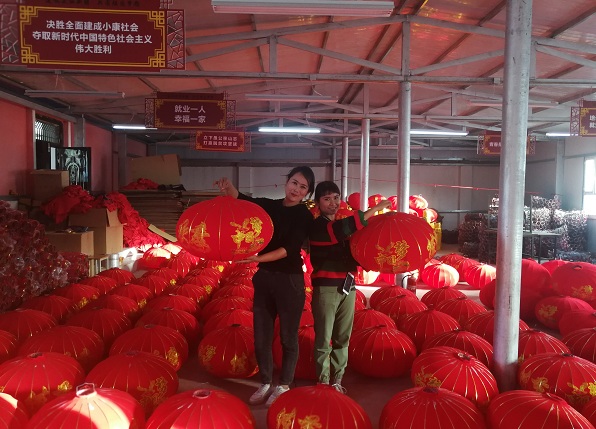 (二)发展主导产业,建设小工厂,为村民脱贫致富增添可持续发展途径。工作队筹措资金10万元在村里建成了灯笼厂,原材料由企业提供,产品由企业销售,村民按件收取加工费,19名无法外出就业(16户贫困户)的农民在家门口实现了就业,每月可增加收入1000元左右,为全村脱贫致富开启了一条稳定的增收路。