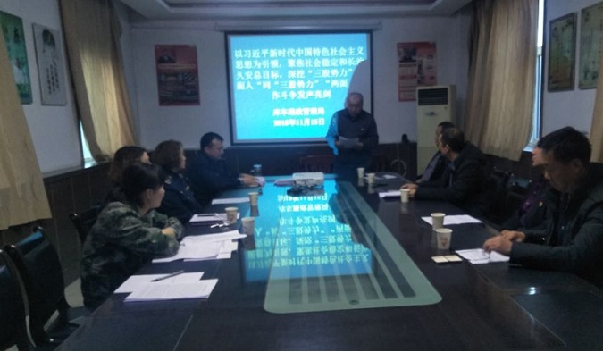 清风网讯 (通讯员:鲁提甫拉·夏米西 杨洁)为深入贯彻落实习近平新时代中国特色社会主义思想和党的十九大精神,进一步聚焦社会稳定和长治久安总目标,聚焦正确认识新疆四史,旗帜鲜明地批判和揭露两面人,按照阿克苏路政海事局党组要求,库车路政管理局党组于2018年11月15日以习近平新时代中国特色社会主义思想为引领 ,聚集总目标结合深挖清查专项行动开展发声亮剑活动。