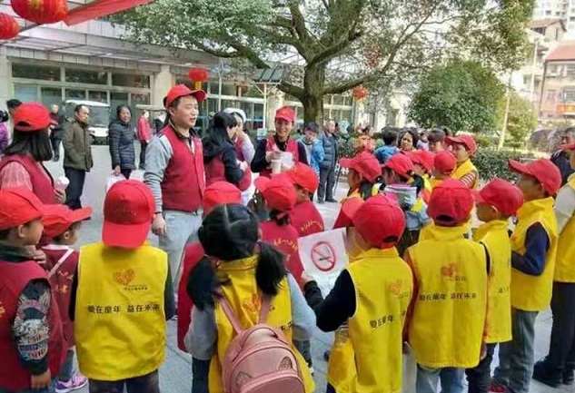 小琳珊发现一位老人在抽烟,赶紧走过去跟他说:“爷爷,您好!吸烟有害于您的健康,我能用我的棒棒糖,换您手里的烟吗?”爷爷赶紧把烟头丢进她的杯子里,不好意思地说:“下次再也不会了!”“爷爷真棒!”同学们收获了很多战利品,忍不住拍照留念。