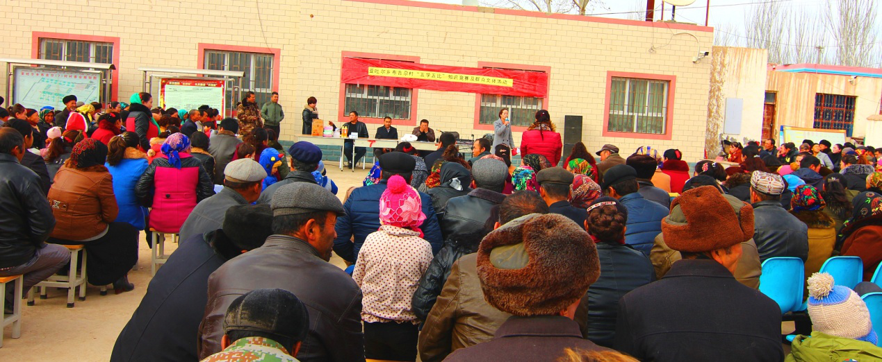 清风网讯(拜城县委办 丁稳文 赵新红 )为进一步普及国家通用语言,提高群众的文化知识,11月16日上午,亚吐尔乡布吉尕村“访惠聚”工作队和村“两委”组织群众开展“五学五比”国语知识竞赛活动,“访惠聚”工作队、村干部、群众共有210多人参加了此次活动。 活动开始前,第一书记阿迪力·阿布都外力为本次竞赛致辞。他说:“这次活动集知识性、教育性、趣味性于一体,对干部群众是一种鞭策、一种提升,对社会各界是一种 号召、一种引导,对贫困群众是一种激励、一种带动。希望大家通过这次活动,进一步强化国语的学习和运用。