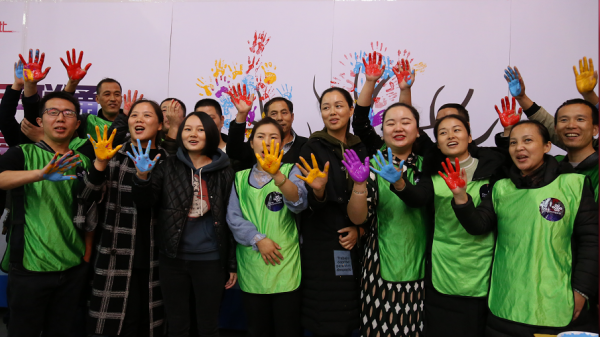 下午,全体参会的经销商与公司员工赶往岳阳职业技术学校开展了团队建设活动,全员分为9个小队,大家热情、积极、有序、圆满完成了全部任务。在13个钉子游戏中,小组成员头脑风暴,成功用一根钉子支撑住了12个钉子,这个游戏让大家懂得了众人拾柴火焰高。指压板接续跳绳中,各队成员们脱掉鞋子,不顾室外的湿地,不顾光脚跳在指压板上的疼痛,只为自己团队而战,也明白了战略、安排和团队的重要性。绳子交叉绑手腕的游戏中,各小组成员将自己身体的柔韧度发挥到最大的程度,最后明白了智慧能让人少走很多弯路。