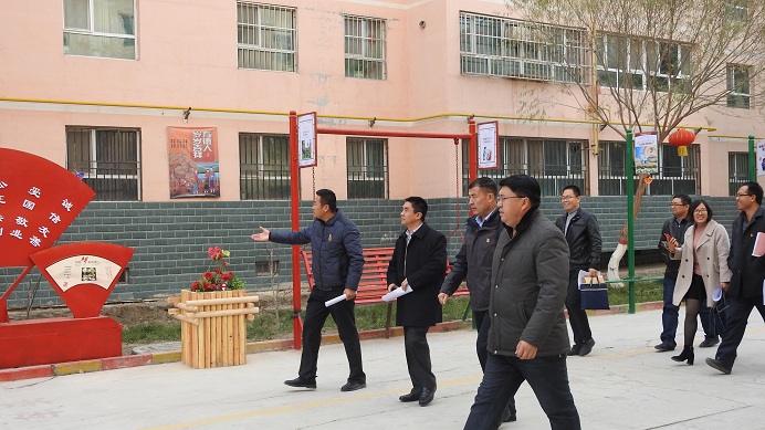 锦绣社区第一书记李新全率队出迎,引导指导组一行参观民族团结示范基地。并就锦绣社区在打造民族团结示范单位工作中做出的努力、亮点和特色、存在的瓶颈短板以及取得的经验成绩等进行解说。