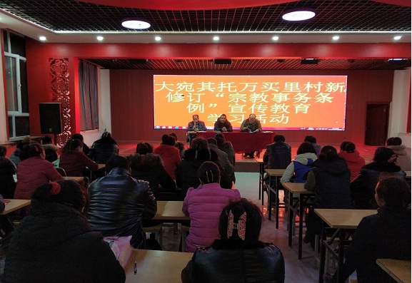 清风网讯(拜城县农机局 供稿)11月16日,拜城县农机局驻大宛其管委会托万买里村“访惠聚”驻村工作队组织群众在村活动中心开展了新修订“宗教事务条例”宣传教育学习活动。村第一书记、工作队队长阿布力克木·赛买提同志主持本次活动并重要讲话,他指出了根据托万买里村宗教实际情况,引导托万买里村信教群众要遵守宪法、法律、法规和规章,践行社会主义核心价值观,维护国家统一、民族团结、宗教和睦和社会稳定。