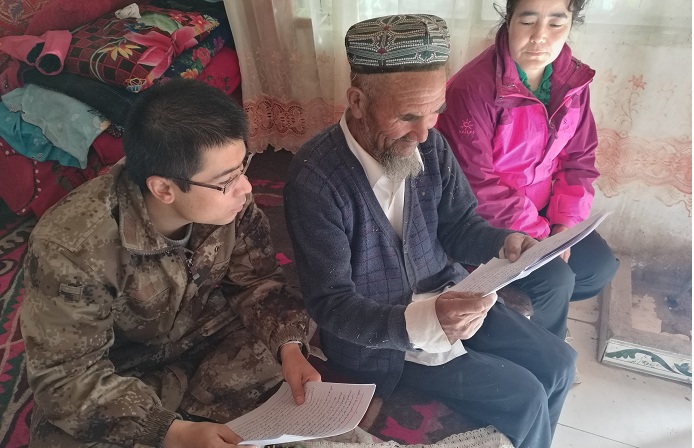清风网讯(通讯员:拜城县税务局 吴贝尔)2018年11月19日下午,县税务局住亚吐尔乡帕什塔其村“访惠聚”工作队联同机关下沉干部、乡住村干部一起对全村8名老党员和1名贫困户党员进行了走访慰问,和他们亲切座谈,探讨总书记的治国理念,学习相关会议精神。老党员买买提·都干说:“习近平总书记带领全党全军全国各族人民励精图治,奋发有为,治国理政新理念新思想新战略,符合历史和时代潮流、符合发展规律和人民意愿,深深凝聚了党心军心民心”。访惠聚工作队队长李源洁宣传说:“党的十九大是在全面建成小康社会决胜阶段、中国特色社会主义进入新时代的关键时期召开的一次十分重要的大会。我们一定要坚持用习近平新时代中国特色社会主义思想武装头脑、指导实践、推动工作,努力做好我们村社会稳定、经济发展、扶贫、劳动力转移就业等工作”。探讨之后“访惠聚”工作队联同机关下沉干部充分听取他们的意见和建议,倾听他们的困难需求,并建立好台账,向他们宣传九项惠民政策以及民族、宗教及惠民政策,让老党员和生活困难党员切实感受到了党的关怀和组织的温暖,并呼吁老党员老干部继续发挥他们的作用,为基层组织建设发力。