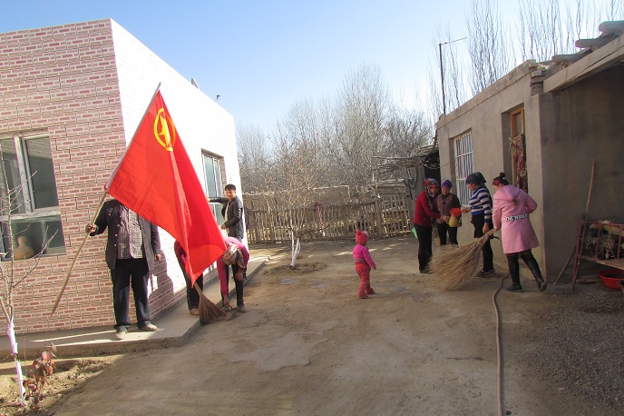 打夯、清淤、清扫地面、将建筑废料和砖头统一归置,一个个年轻人不顾脏和累,从中午忙活到日落西山,终于结束了劳作。一户户家庭的院墙环境焕然一新,一户户困难群众无不对“访惠聚”工作队和团员们竖起了大拇指。伴随着飘扬的团旗和村民的感谢声,优秀青年和团员们带着自豪回到了村委会进行了简短的总结和清理。通过这次团员先锋日活动,大家获得了强烈的自豪感和对组织的认同感。纷纷表示当自己条件符合的时候,一定要从团员向党员进步,从团支部向党支部靠拢。
