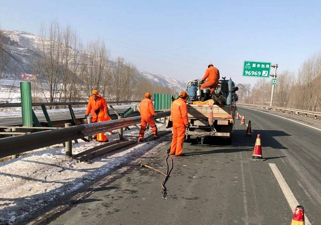 连日来,甘肃天水公路管理局高养中心组织交通设施维修队分三个作业组,投入双排座3辆,养护职工15人,对G30线连霍高速公路宝天段、天水过境段、天定段和G310线天巉公路中央分隔带防眩设施、波形梁护栏等损坏交通安全设施展开修复,及时消除安全隐患。