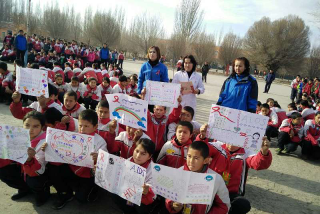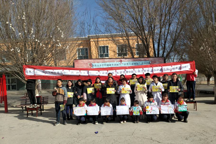清风网讯(拜城县黑英山乡人民政府:阿依努尔·牙生)2018年12月1日是第31个“世界艾滋病日”,今年活动的主题是“主动检测,知艾防艾,共享健康”。为切实做好我乡艾滋病防控工作,加强学生对艾滋病知识的了解,提高学生防艾意识和自我保护能力,由乡中心卫生院、乡妇联、乡中学共同主办了“12.1世界艾滋病日”现场宣传活动。