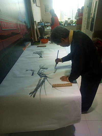 李保平现场创作作品同副主任吴亚刚(左)合影