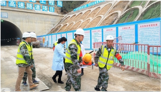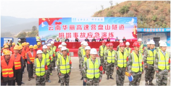 清风网讯 (特约记者 常魁星 通讯员 朱创业)12月16日,中建七局华北公司在全国第四长隧道、云南第一长隧道—营盘山隧道出口成功举办了云南华丽高速2018年公路隧道突发事件应急演练,检验项目应急救援队伍的快速响应能力,提高快速反应及协同作战能力及公路隧道安全运营能力,严防重特大交通安全事故发生。由云南华丽高速公路项目组建的6支应急救援队伍和永胜县交通、消防、安监、医疗等组成的4支专业救援队联合参加演练。中建云南华丽建设指挥部总会计师梁军伟、中建七局华北公司副总经理、工会主席兼安全总监、质量总监周晓益、基础设施分公司副总经理隋伟及永胜县政协主席成联柱、政法委、安监局等相关人员观摩演练。