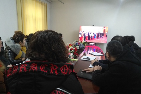 胜利社区工作队与社区干部一同观看改革开放40年大会盛况