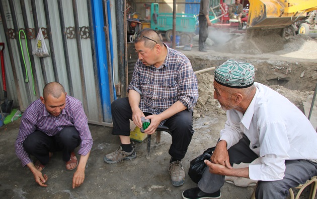 艾买提·买提尼亚孜是村民三小组的一名老党员,主要收入来自家中14亩红枣地。2017年底,王兵入户走访到艾买提家中,发现红枣几乎全部滞销在家里,询问过后才知道老人这一年的红枣收入只有1500元,看着老人那张饱经风霜的脸上露出的尴尬笑容与两只深陷的眼睛传递出来的无奈的叹息,王兵记在了心里。今年5月底,王兵为艾买提购买了上等的西瓜种子,并带着老人向种瓜农户取经。工夫不负有心人,8月,一片碧绿的瓜地里,躺满了一个个硕大圆滚的西瓜,艾买尔看着这绿油油、沉甸甸的果实,脸上洋溢出丰收的喜悦。“王书记!快看!我的西瓜成熟了!”老人带着脸上褶皱的笑容拉着王书记就往瓜地里走。王兵看着一个个圆滚的西瓜,高兴的握着老人的手亲切地说:“哎呀,老汉,这么好的西瓜一定会卖个好价钱,放心吧!”果然,没过几天,就有老板以6000元的价格全部收购,老人激动的握着王兵的手:“王书记,如果不是你,别说6000块,60块钱我也见不到啊···”王兵听着感动,看着欣慰,但对他的帮扶并没有因此而停止。10月,又是红枣成熟的季节,艾买提家的枣树也早已是硕果累累,王兵组织黄宫村的结亲干部来到枣园帮助老人摘枣,并帮助老人找销路,结亲干部们也纷纷购买了老人的红枣,老人的脸上再次露出了感激的笑容。