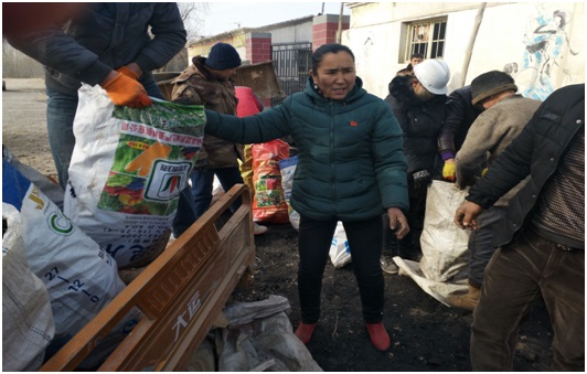 领取到“暖心煤”的贫困户妮萨汗•伊敏紧紧握住党支部书记朱殿科的手激动的说到:“党和政府的政策好,不仅给我们发放煤,还考虑到我一个人搬不了,帮我送到了院子里,感谢你们!感谢共产党!”。