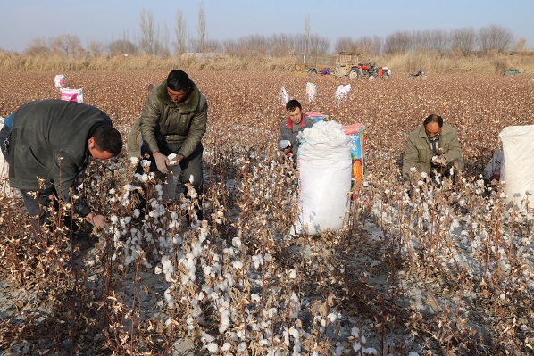 清风网讯(通讯员:新疆农业大学 许玉斌)村里的种棉大户热合曼•玉散家共有100亩棉田,早在10月,就一片雪白,传递出丰收增产的信号。可是,一边是满地白灿灿的棉花,一边是没有足够采摘劳动力的难题。急得热合曼•玉散直跺脚:“眼看着一天比一天冷,还有约70亩头遍棉花都没有采完,部分棉花已掉落在田地里,拾不出来,说啥都白搭,真是急死人了。” 热合曼•玉散只能“望棉兴叹”。