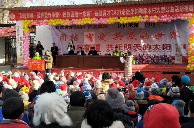库如勒库木村小学现有学生217名,在编教师10名,其中支教老师6名,属于一所偏远贫困的小学。阿克苏地区农业局驻村工作队了解到村里贫困学生的实际状况后,决定感召社会的力量让村里的孩子过一温暖祥和的冬天。11月初,由驻村工作队队长王江平在网络上发起的一封《让村里的孩子过一个温暖的冬天》的感召信,经各大媒体转载后,在社会上引发了强烈的共鸣。11月18日,新疆领航育才TA31志愿团首批爱心人士抵达沙雅县英买力镇库如勒库木村,与驻村工作队进行对接,并将倡议书通过互联网发至慈善公益平台,号召社会各界人士进行爱心捐助。