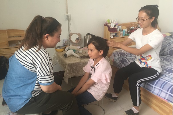 毛宁拿出吹风机一边帮帕丽扎提吹干头发,一边听着小家伙絮叨:“姐姐,这是什么,它一吹我的头发就干了!”“姐姐,这个热水器洗澡真舒服!”“姐姐,你的洗发水真香,我现在头发一点也不痒了,身上也不痒了!”……