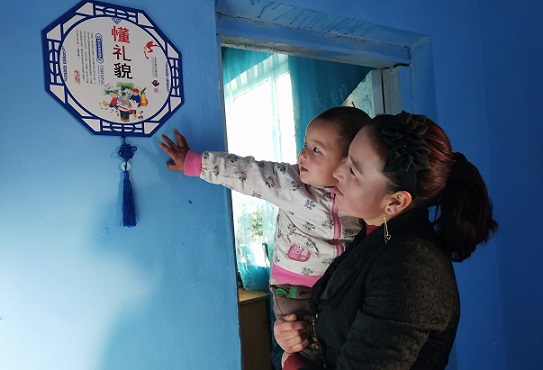 今年拜城县康其乡和谐村农户家家换了新颜,实现了美化绿化靓化,内外兼修,将弘扬中华优秀传统文化,培育和践行社会主义核心价值观作为重点,家家户户争先美化靓化装扮房屋居所,学习中华优秀传统文化,在家中贴上对联、字帖、挂图,以家庭为单位进行文化熏陶,从娃娃抓起以“小手牵大手”形式,孩子和家长共同学习相互促进。