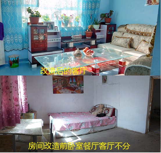 而在“美丽庭院”工作开展前,工作队在走访中发现很多村民家中还未实现“三改”,家中是做饭熏的黑黢黢的墙壁,挂毯、地毯尘土落积,饭桌旁摆着床,孩子们都在炕上趴着写作业,而村民却习以为常。