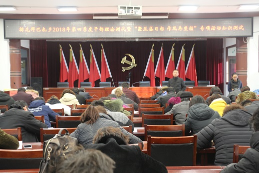 清风网讯(通讯员:排先拜巴扎乡人民政府 黄素平)为深入学习贯彻习近平新时代中国特色社会主义思想和党的十九大精神,进一步推进“聚焦总目标、作风再整顿”专项活动开展,12月21日下午,排先拜巴扎乡组织全体机关干部、各“访惠聚”工作队一般干部等110余人,在乡大会议室开展第四季度干部理论测试。