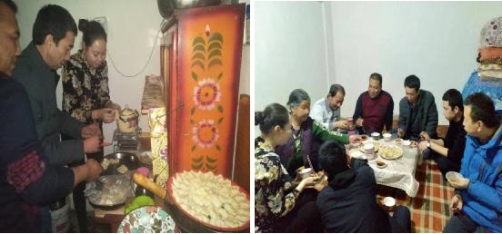 21日晚上,奥吐拉买里村工作队,村级各支力量到农民党员艾山·吐尔逊家开展“民族团结一家亲”暨 “传统冬至佳节”活动。活动中工作队成员,村级各支力量艾山·吐尔逊一家人一起包饺子、煮饺子、吃饺子,一起唱着激情的歌跳着动感霸气的舞姿,现场一片热闹场景。