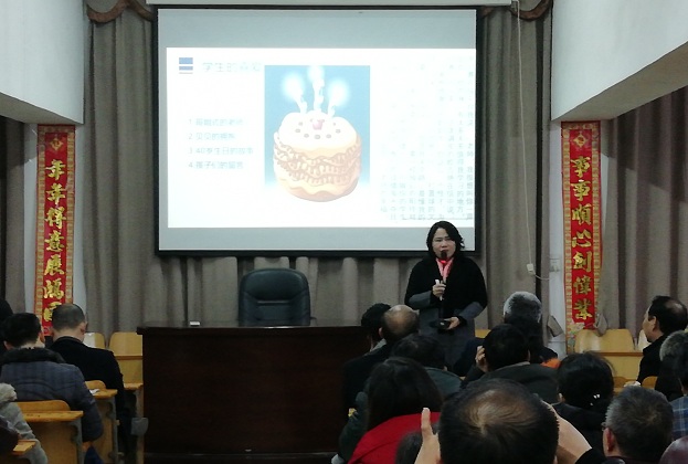 陈志男老师主要从教师的幸福感是什么、教师如何获取幸福感两个大的方面进行了精彩的阐述,告诉大家只要做到眼中有真情、心中有追求、手中有书笔和脑中有思想就能成为一个幸福的老师。并结合自己的英语教学特色、班级管理经验、成为名师的心路历程、幸福老师的职业生涯解惑大家教育教学中的迷茫。陈老师利用精美的课件,还原了部分学生的读写片段和一些课堂精彩瞬间,整个讲座历时130分钟,做到了理论结合实践,策略结合实例,都是满满的“干货”。