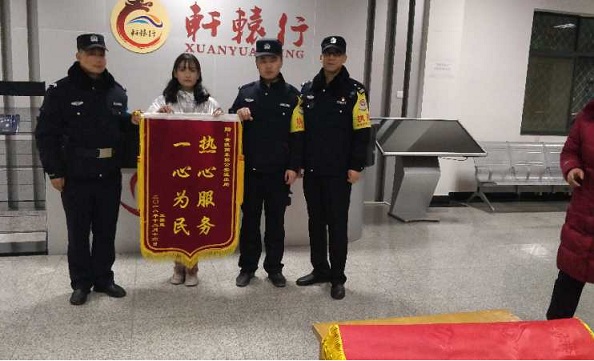 下午15时许,赶回黄陵取包的旅客王雅慧激动的说,“真的太感谢您了警察同志,要不是您我真的不知道该怎么办才好”。李向阳微笑着说,“不客气,这是我们应该做的”。并提醒王女士说,“不过您下次乘车一定要看好自己的行李物品,防止丢失或被盗”。王女士说,“一定,一定吸取教训”。并从包内取出200元钱向民警李向阳表示感谢,被李向阳拒绝,过意不去的王雅慧坚持让家人订做了一面写有“一心为民,热心服务”的锦旗向民警李向阳表示了感谢。