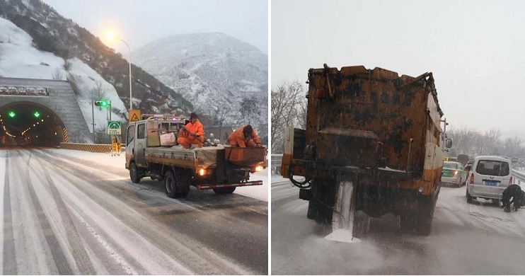 清风网讯(通讯员:胡泽庭)受较强冷空气影响,12月27日,甘肃天水境内出现中到大雪天气,天水公路管理局高养中心以雪为令,党政主要领导一线指挥,组织人员机械设备上路除雪防滑。在G30线连霍高速宝天段和天定段,G310线天巉公路多功能除雪车全线撒铺融雪剂推雪除雪,人工配合小型融雪剂撒布机在急弯长大下坡、桥面、隧道进出口等重点路段撒铺融雪剂和防滑料,全面打冰除雪。