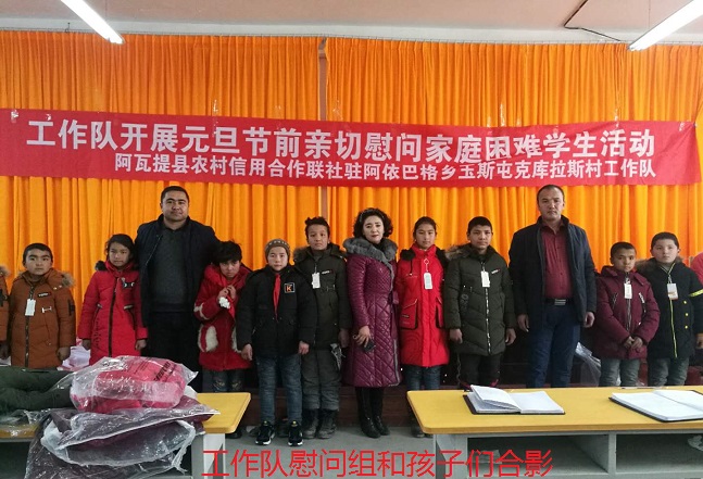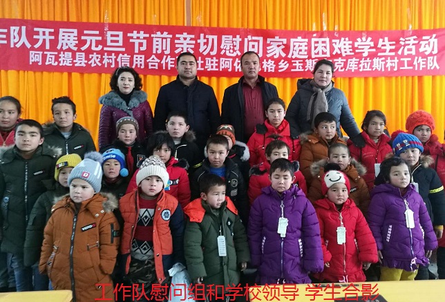 清风网讯(通讯员:阿瓦提县农村信用合作联社 马保瑞) 2018年12月28日,在元旦即将来临之际,阿瓦提县农村信用合作联社驻阿依巴格乡玉斯屯克库拉斯村工作队,带着节日的祝福及慰问品来到本村学校,对家庭生活困难的孩子们进行看望和慰问。