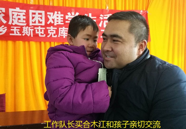 元旦节前慰问活动,充分体现了党和政府对教育事业的关怀,工作队队长、村第一书记买合木江.依米热木孜蹲下身子亲切的和孩子们进行交流,他说:孩子是民族的希望、祖国的未来,希望孩子们在老师、家长的精心呵护下,在全社会的共同关心下,快乐生活,健康成长。鼓励孩子们努力学习,从小树立远大志向和崇高理想,养成良好品行,继承和发扬中华民族的传统美德,常怀感恩之心,将来回报社会、报效祖国。