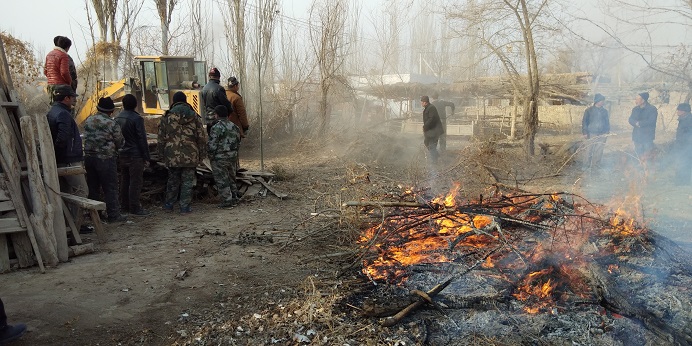 在清扫过程中,每位同志都表现出了不怕脏不怕累的精神,不放过任何一个死角,哪有脏就到哪里扫,小院里充满着一片繁忙的身影。经过一番认真细致的清扫和整理,库尔班•莫明的小院变得整洁有序,面貌焕然一新。