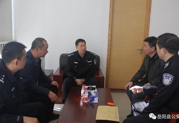 12月17日上午10时许,岳阳县公安局党委委员、副局长万岳平与东莞市公安局党委委员、纪委书记刘朗辉就两地警方加强易制毒化学品管控开展警务交流合作。
