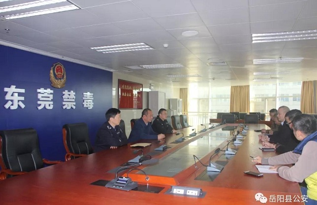 12月17日上午,岳阳县、东莞市两地警方代表在东莞市公安局禁毒支队召开警务合作交流座谈会。东莞市禁毒支队支队长卢东江、禁毒支队副支队长张道新、岳阳县公安局党委委员、副局长万岳平出席会议。
