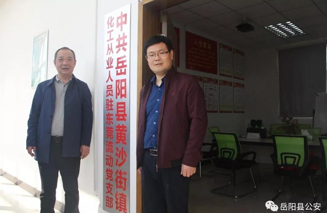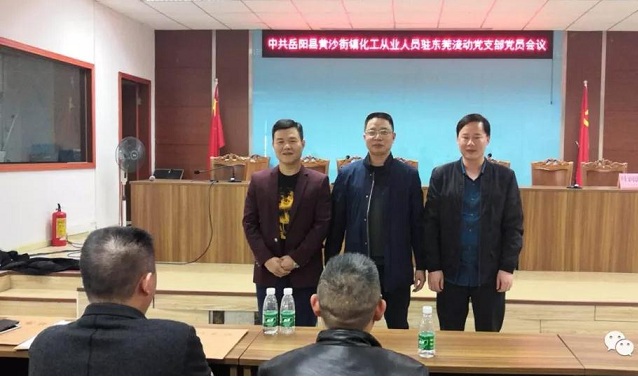 12月18日上午9时许,中共岳阳县黄沙街镇化工从业人员驻东莞流动党支部在东莞市政欣化工科技有限公司挂牌成立。岳阳县公安局党委委员、副局长万岳平、黄沙街镇党委副书记、镇长费时铭等同志出席揭牌仪式。